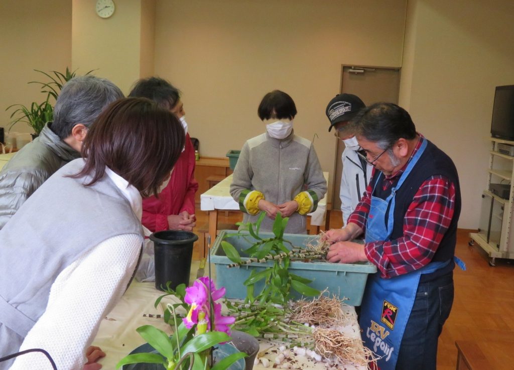 | 内容 | コチョウランやシンビジウムなど、洋ランの特徴や年間の管理方法について説明し、持参された洋ラン(1人1鉢)の植替えを指導します。 |